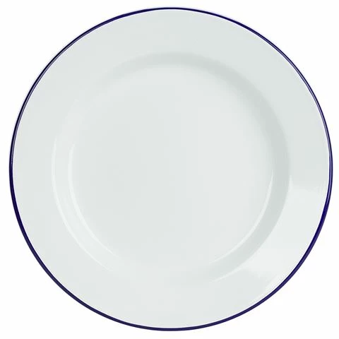 Enamel is distinct – especially if it’s Falcon enamelware. Since the 1920s, Falcon has filled British homes and kitchens with its pure white enamel bowls, tumblers and baking dishes, all with their tell-tale royal blue rim. It looks the part, and it’s incredibly tough, as each piece is made by fusing porcelain onto heavy-gauge steel. If you drop it, it won’t break. It’s resistant to chemicals. You can put it in the oven, and you can use it on gas and electric hobs.