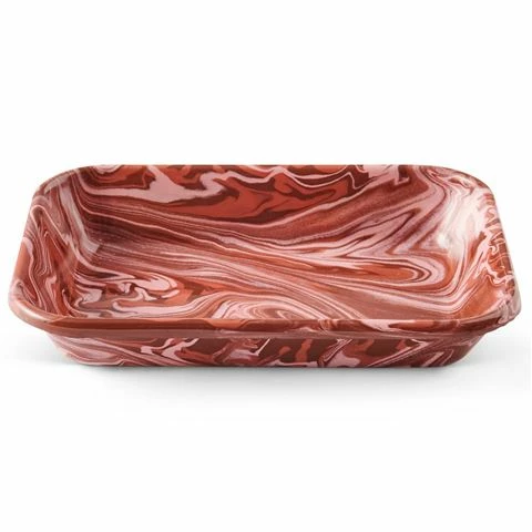 This Desert Swirl Enamel Snack Dish is inspired by the earth in Central Australia and will add some serious marble style signals to your settings with its swirls of deep red, rust and pinks. Fill it with chocolates, which will look positively organic in such an earthy dish.